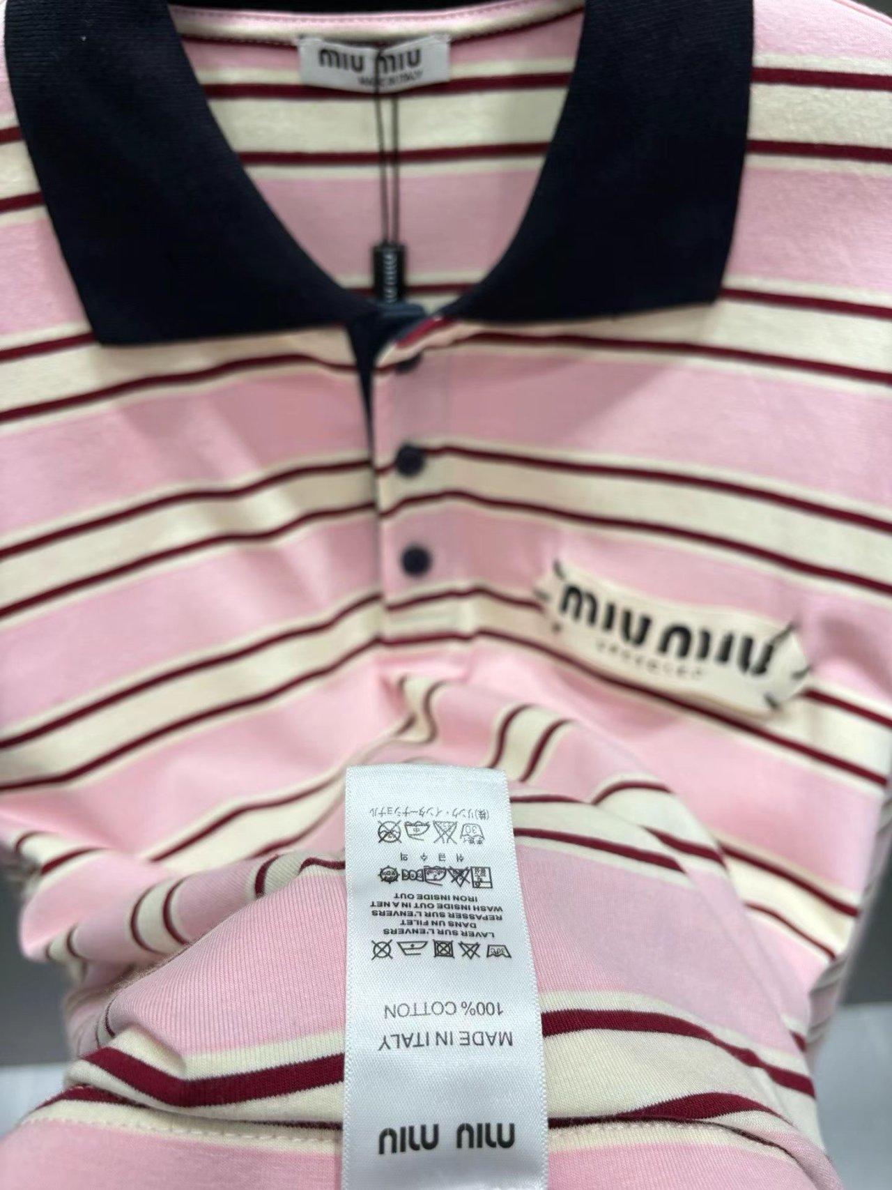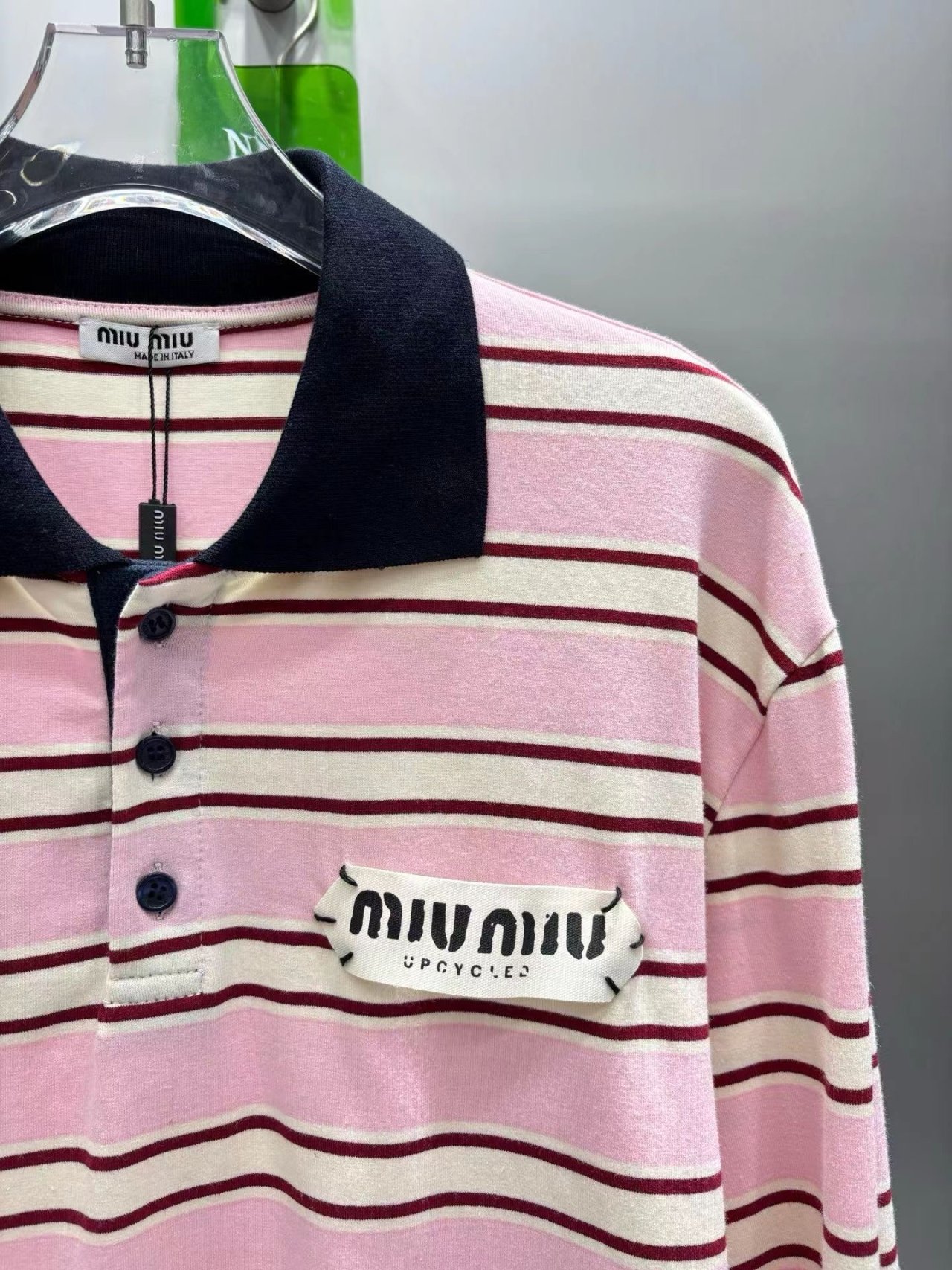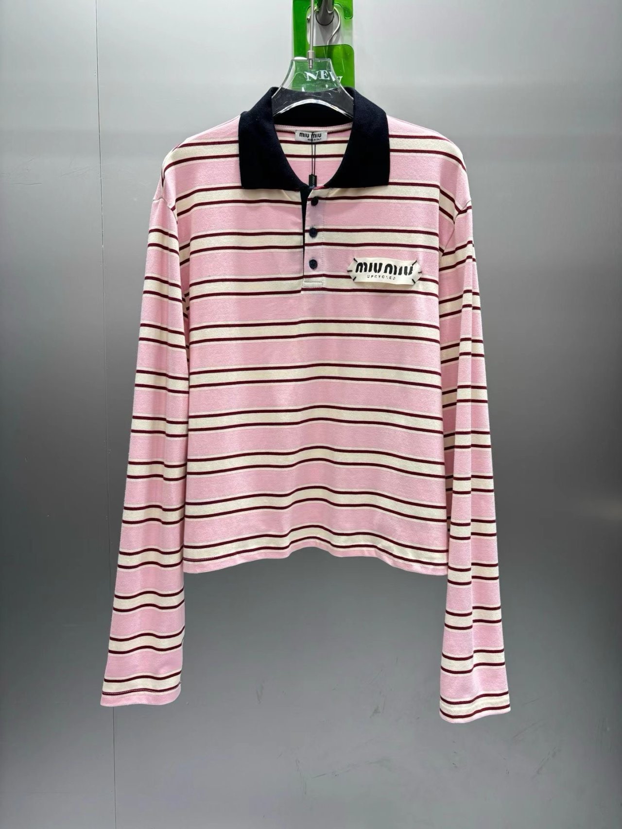 핑크(블랙 배색 카라. 로고 프린팅 디테일)